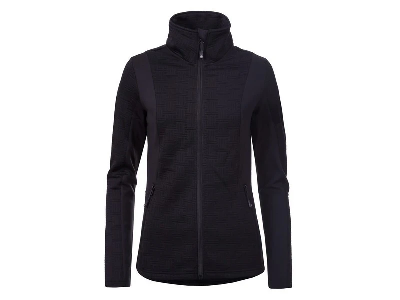 dames midlayer misty zwart van Icepeak. Deze midlayer is gemaakt van thermal materiaal, is ademend en snel drogend. Nessa is een fijn vest om tijdens koudere dagen onder een ski jack te dragen. De pully heeft een hele ritssluiting en de zijkanten zijn gemaakt van stretch materiaal voor extra bewegingsvrijheid. Daarnaast heeft het vest aan de voorzijde 2 zakken met ritssluiting.