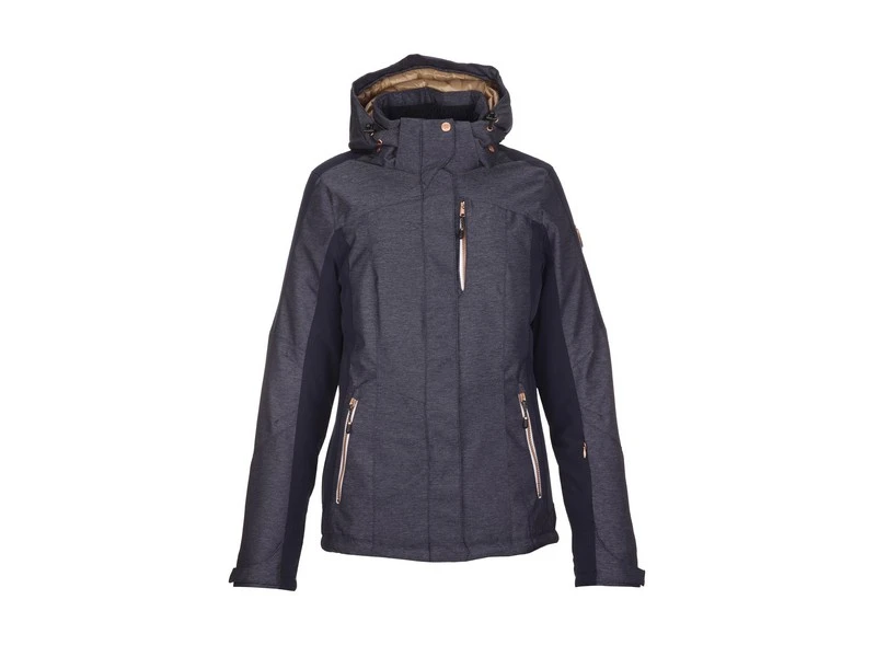 Dames ski jack Cecilie van Killtec. Het jack heeft een afneembare capuchon en een sneeuwvanger. Het jack heeft aan de voorzijde twee afsluitbare zakken en heeft in de mouw een zakje voor een skipas. Het jack is wind en waterdicht.